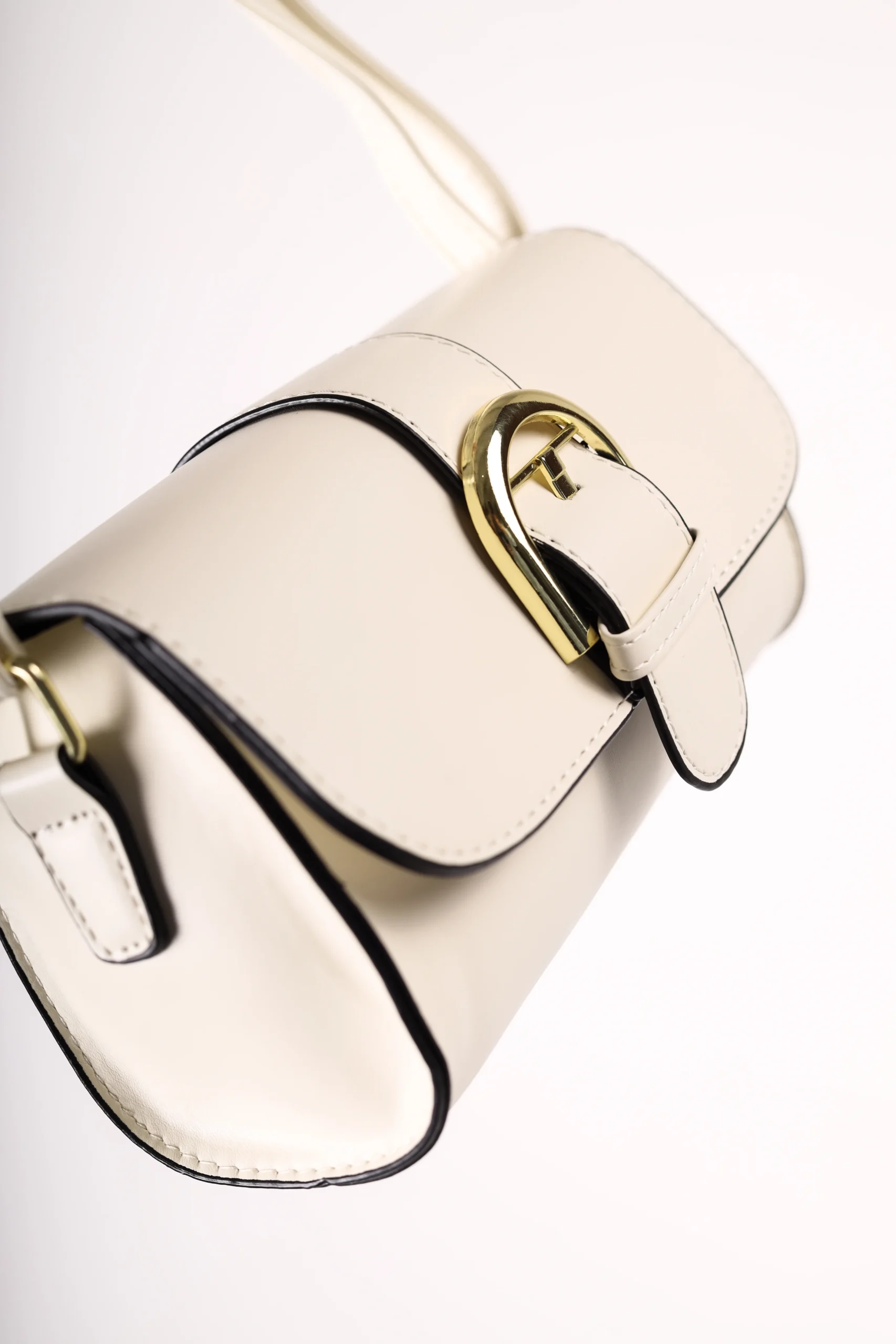 Ova prefinjena torbica u krem nijansi, dimenzija 20x11x8 cm, savršen je izbor za svečane prilike, večernje izlaske ili stilizovane dnevne kombinacije. Izrađena od čvrstog poliuretana, torbica zadržava savršen oblik, dok magnetno zatvaranje omogućava praktično korišćenje.